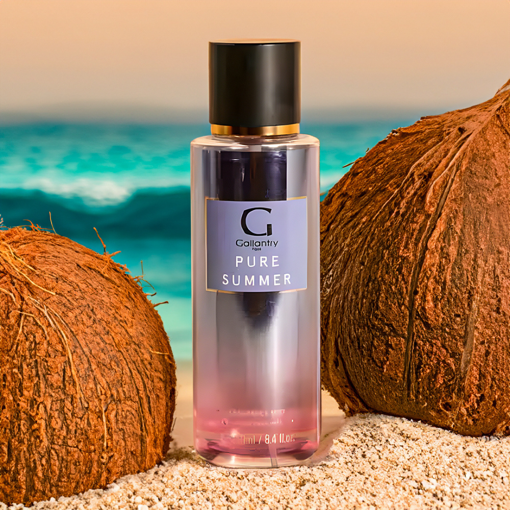 Erkunden Sie die sensorische Flucht des puren Sommers mit Gallantry Pure Summer Mist. Tauchen Sie ein in eine Welt voller Gourmet-Köstlichkeiten, in der sich sonnige Noten von Insel-Kokosnüssen, warmer, hautstreichelnder Sand und Leidenschaft für den Strand harmonisch vermischen.
