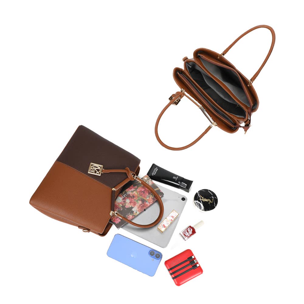 Die Élisa-Tasche besticht durch ihr modernes und anspruchsvolles Aussehen. Aus hochwertigem, strukturiertem Material gefertigt, zeichnet sie sich durch elegante Farbkombinationen und ihren charakteristischen goldenen Anhänger aus, der ihr eine raffinierte Note verleiht.